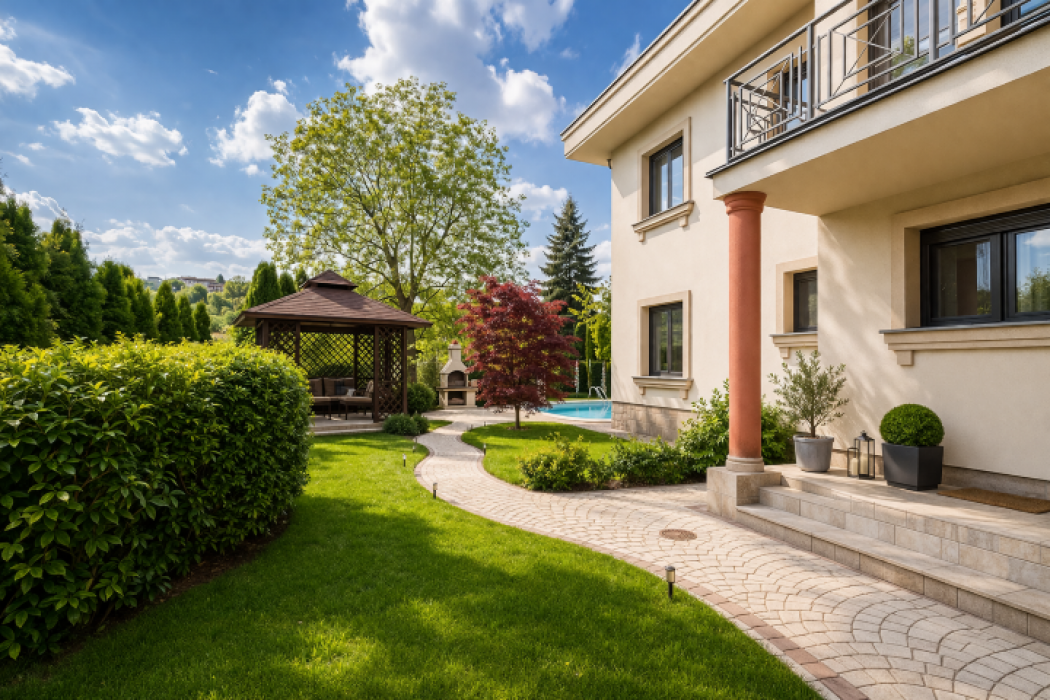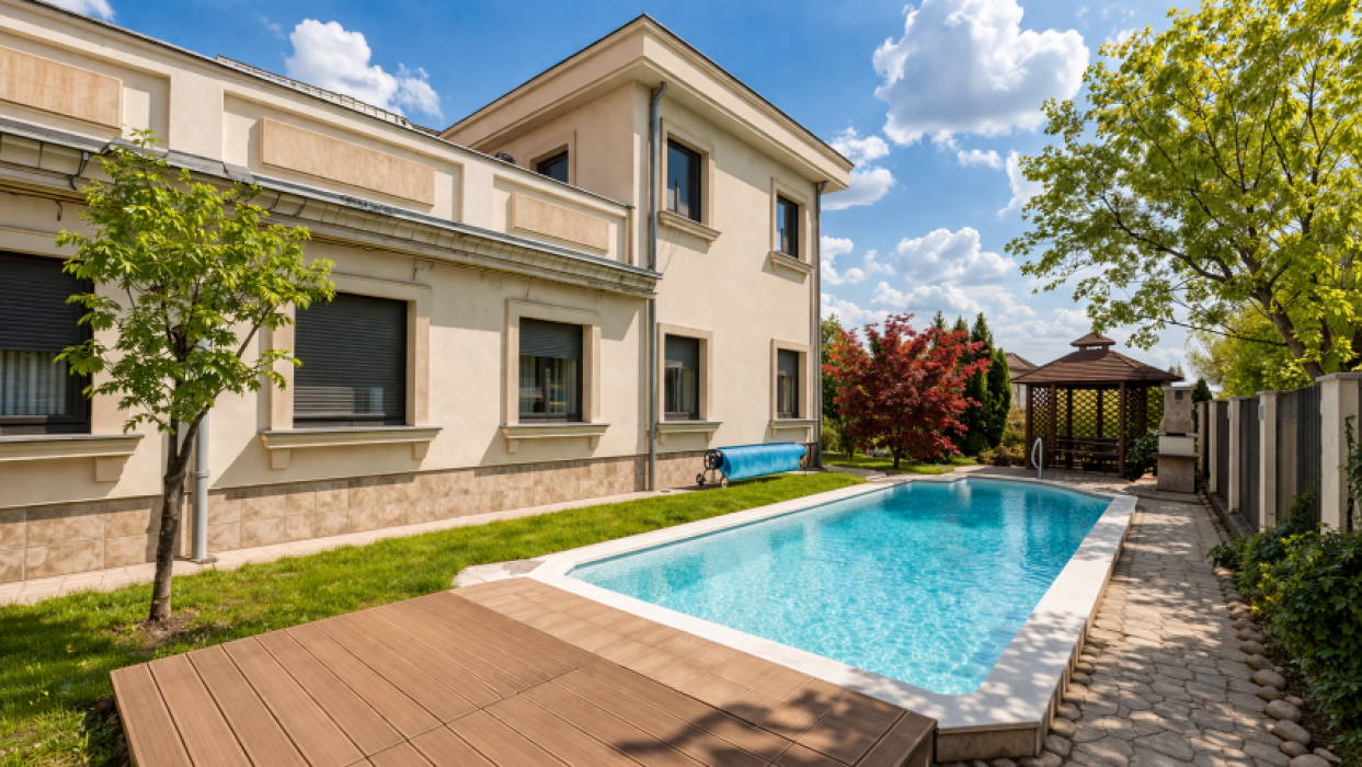 The house is luxuriously equipped, with a pool and a gazebo exclusive to this section