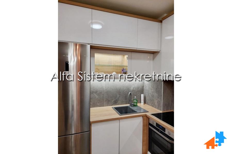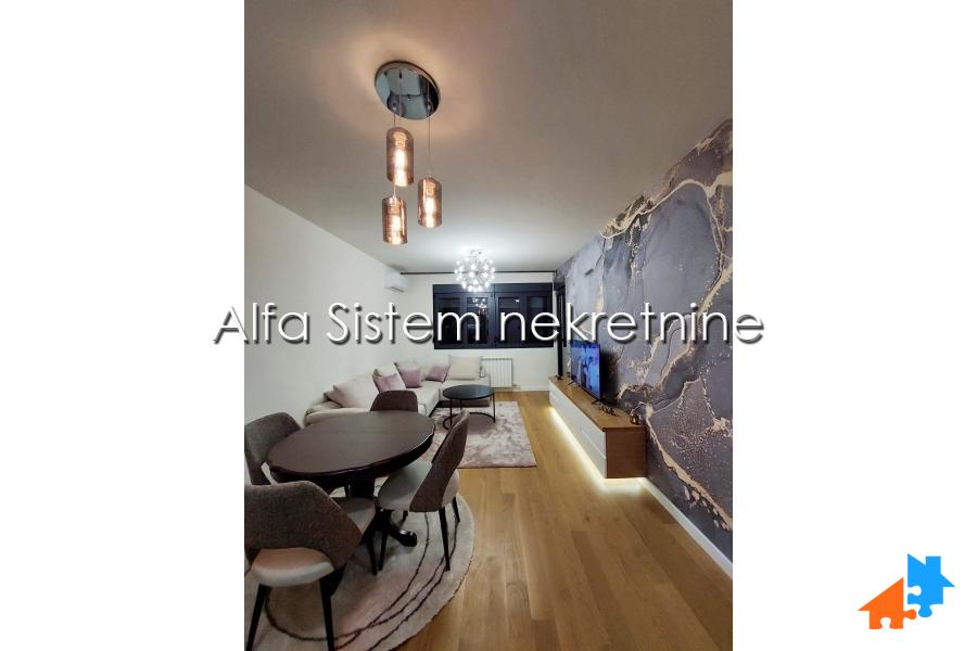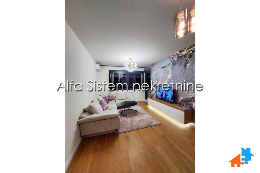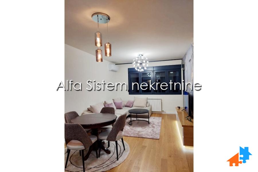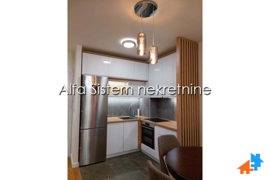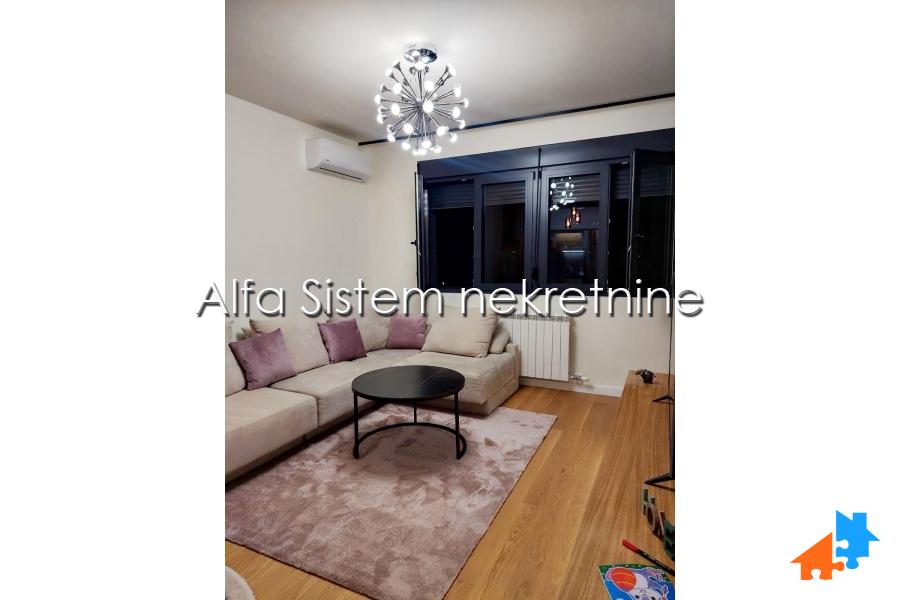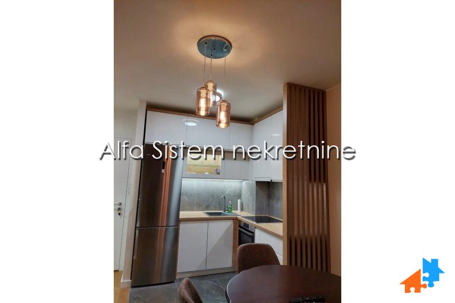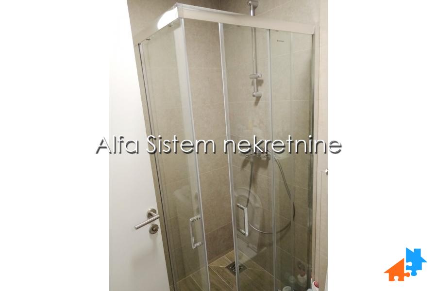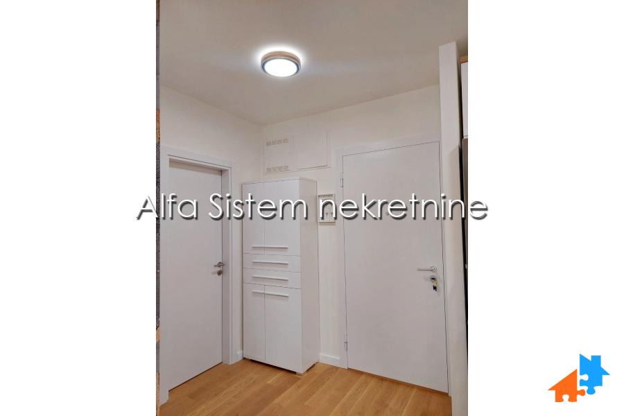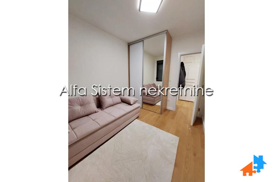 A one-bedroom apartment on the fifth floor of a modern new building is available in an excellent location. Within the building complex, there are amenities such as a drugstore, pharmacy, NLB bank, and a playground. The apartment comes fully furnished with new furniture, has direct hot water supply, and includes a garage space. It has not been previously occupied. A deposit equal to one months rent is required.
