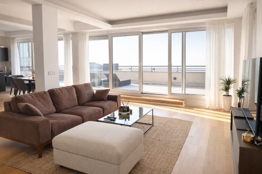 A completely new, spacious three-bedroom apartment of 160m² (115m² + 45m² terrace) is available for rent in a newly built residential building in Višnji?ka Banja. The apartment is the only unit on the floor and has direct elevator access, offering breathtaking views of the Danube from every room.