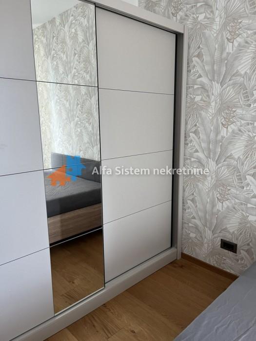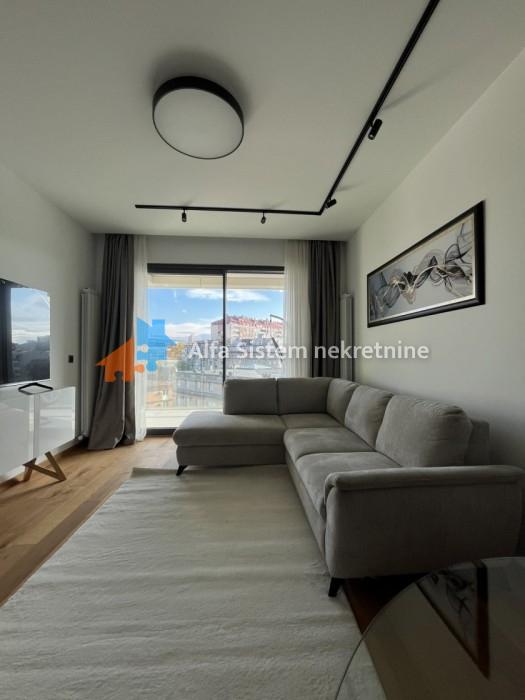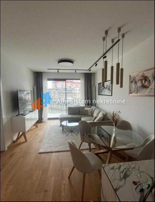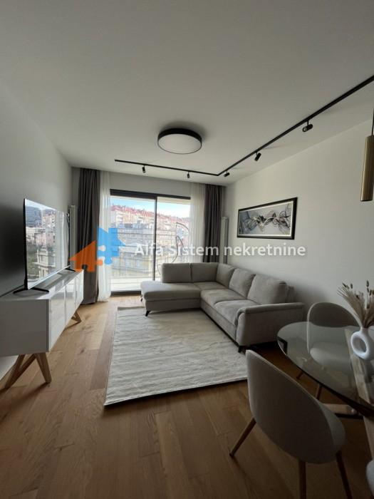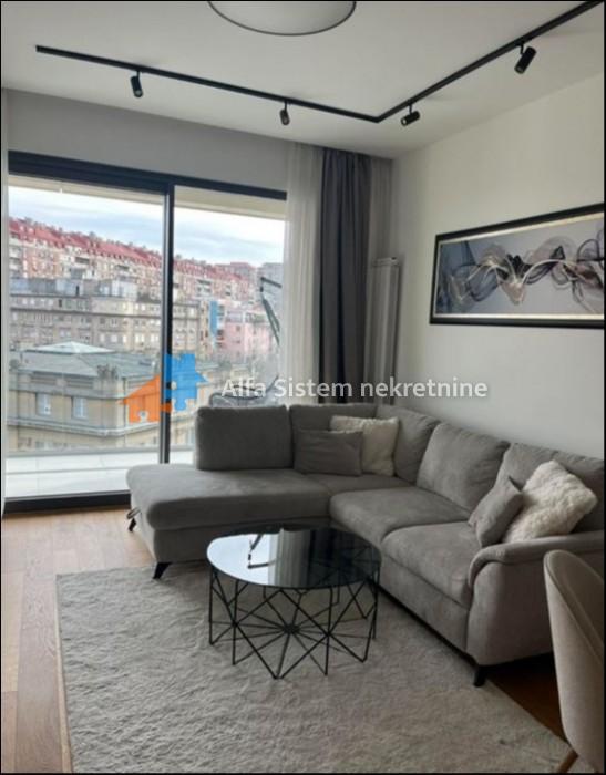 A newly built, luxury furnished 2-room apartment is available for rent in the prestigious Novi Dorcol complex, located in the sought-after Venizelosova street. The apartment is situated on the 5th floor of a 12-story building, offering a stunning view of the surrounding area. The apartment is east-facing and spans 50 m².
