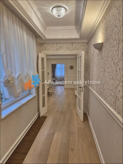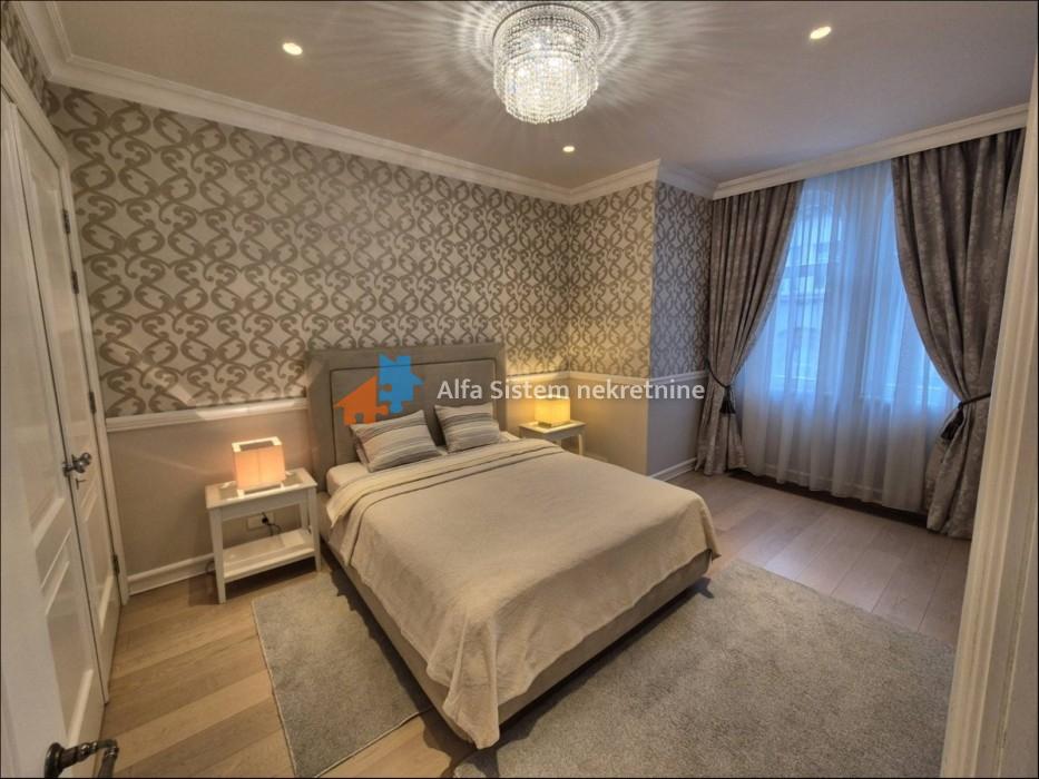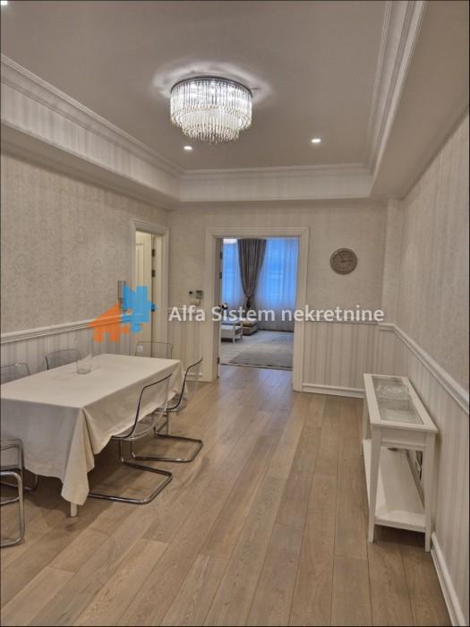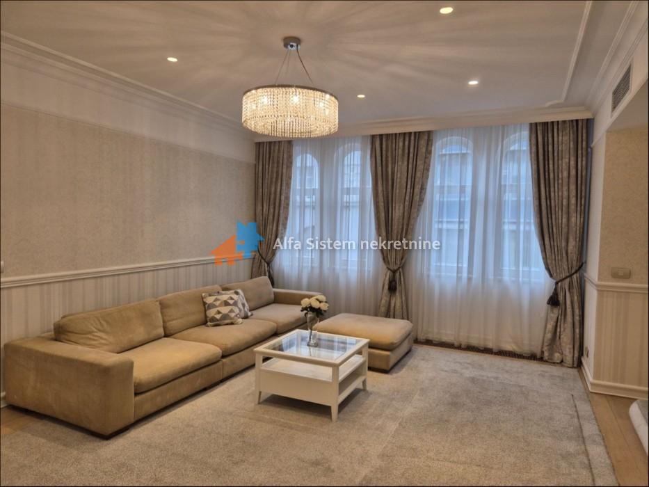 For rent is a luxurious salon-style apartment of 117 m² in an exceptional location in the center of Belgrade, in the immediate vicinity of Republic Square and Knez Mihailova Street. Two rooms have a direct view of Knez Mihailova Street. The apartment is located on the 4th floor of a well-maintained pre-war building under state protection as a cultural monument, with an elevator.