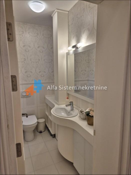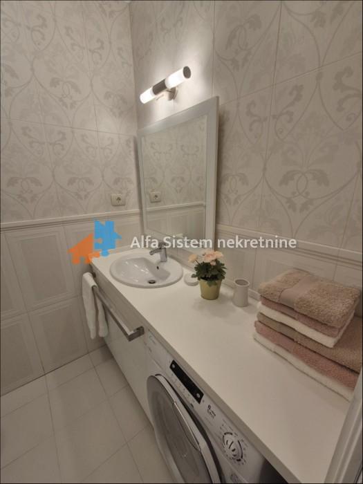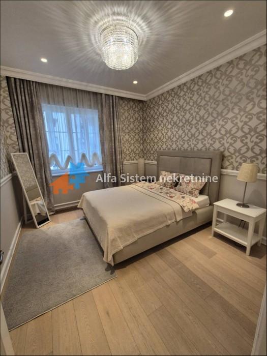 The ceiling height is approximately 3 m, which adds extra elegance and spaciousness to the space. The apartment is bright and luxuriously furnished, and consists of two bedrooms, a spacious living room, a kitchen, a dining room, an entrance hallway, and two bathrooms. Heating is central with floor radiators, and the apartment also features centralized air conditioning without indoor units.