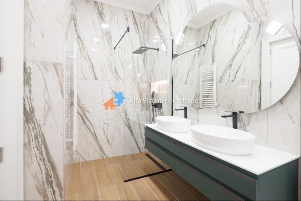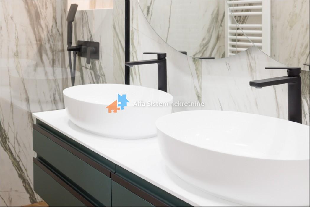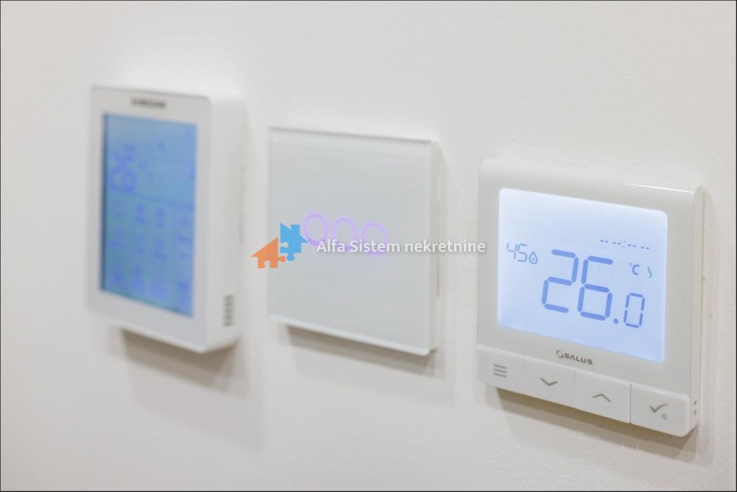 It is equipped with underfloor heating throughout the apartment, WindFree inverter air conditioners in every room, and a smart home system (remote control of heating, cooling, lights, blinds, and camera). It features aluminum joinery with triple-glazed windows and electric blinds, Italian ceramics, ceiling height of 3.3 m, two entrances, and video surveillance. Multiple garage spaces are available for rent. Pet friendly.