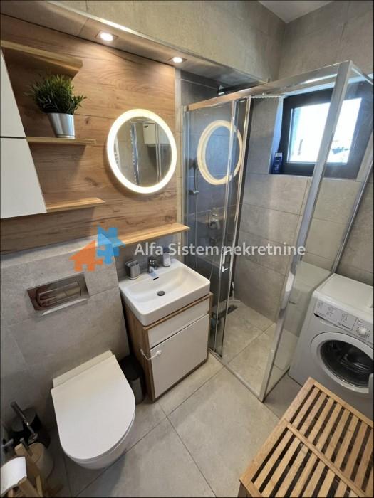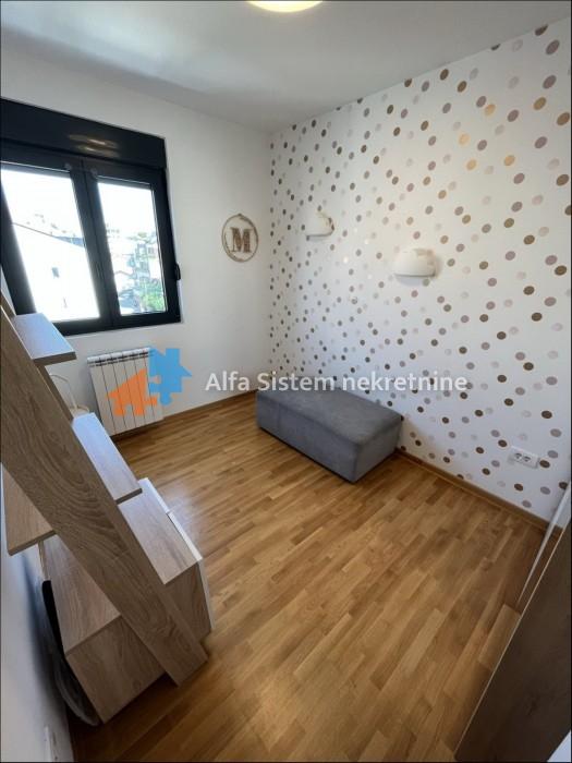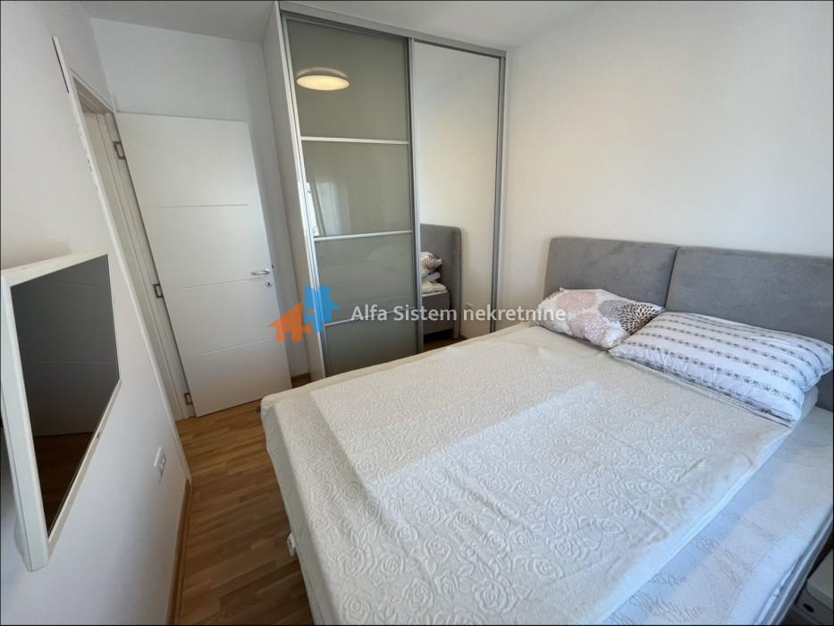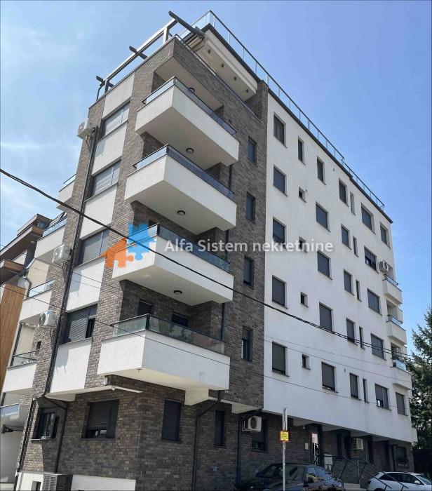 The apartment is located in a quiet building, very close to the Second Economic School. It is bright and modern, with two bedrooms and a living room, a bathroom, and a long hallway with utility connections on the wall. There is also a terrace. The building offers the possibility of renting a parking space in the garage across the street, with an additional fee.