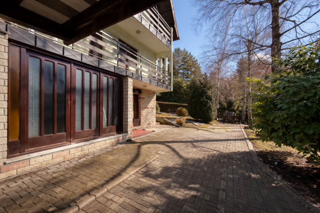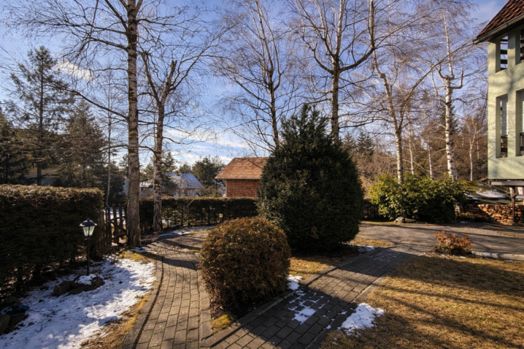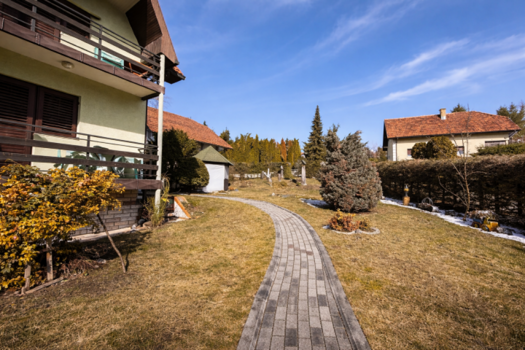 Additionally, the property includes several auxiliary structures, such as two summer houses, a storage shed, a boiler room, and a carport, and is fully connected to the sewage system. Heating is centralized, with its own boiler and radiators on every level, while the dedicated boiler room ensures practicality and energy efficiency. The plot is carefully landscaped and surrounded by greenery, providing complete privacy and tranquility, with an asphalted driveway leading directly to the yard, offering easy access.