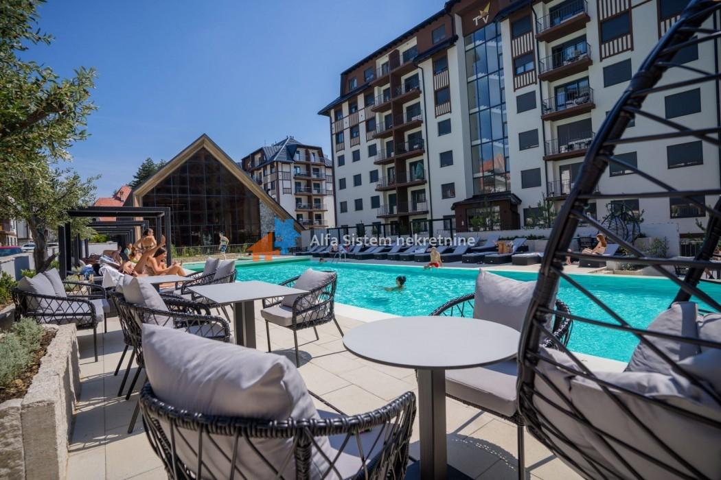 A registered one-bedroom apartment is for sale in the prestigious Titova Vila complex in Zlatibor, ideal for vacation use or as a rental investment.