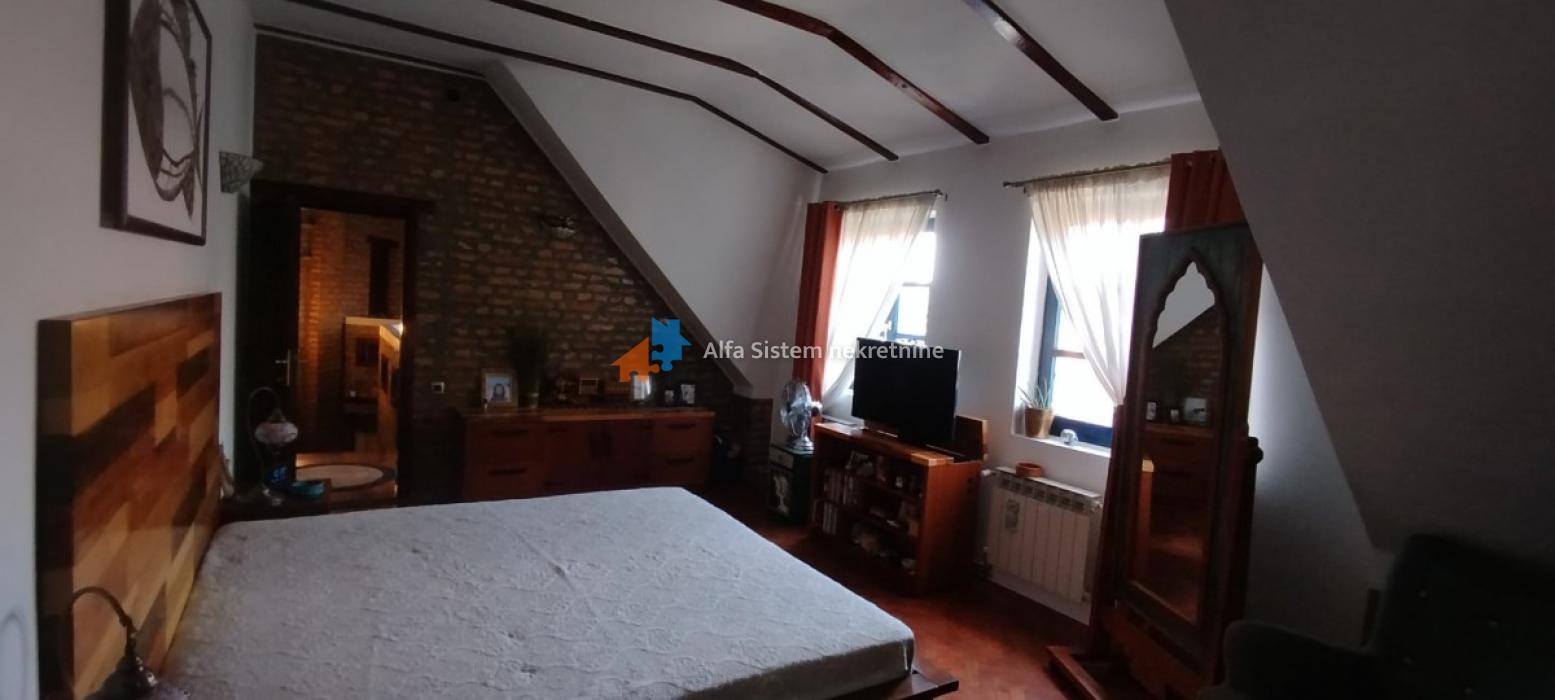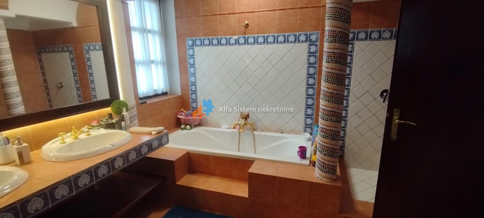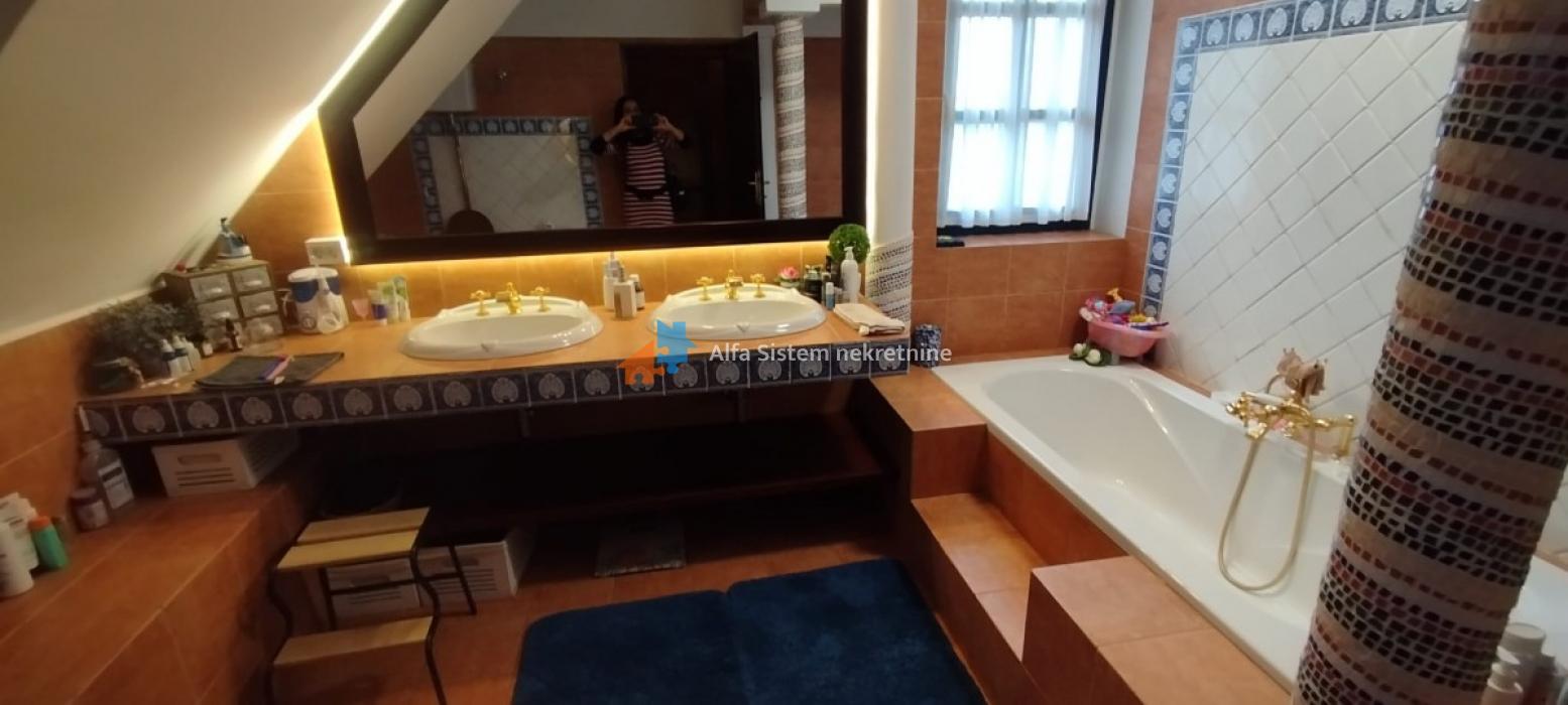 Porodična kuća se nalazi na opštini Voždovac. Kuća je 360 m2, na 5 ari placa, poseduje grejanje na gas, kanalizaciju, dve velike dnevne sobe, kuhinju 36m2, četiri spavaće sobe, 5 kupatila, vešernicu, vinski podrum., tri prostorije ostave. Takodje poseduje i garažu i 5 +parking mesta, video nadzor, elektronsku kapiju, video interfon.