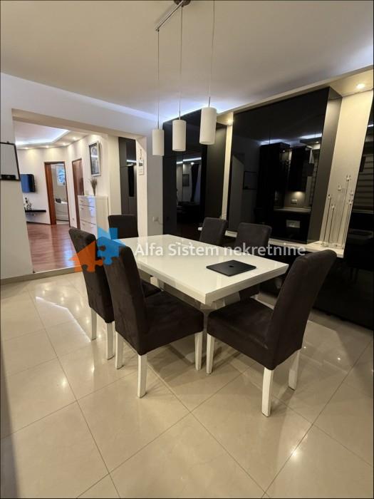 Stan je funkcionalno organizovan i sastoji se od dve povezane celine, jedne odvojene prostorije, toaleta, terase i balkona. Izdaje se polunamešten ili namešten, u skladu sa potrebama zakupca (ugrađeni stakleni plakari, stakleni elementi i kuhinja ostaju).