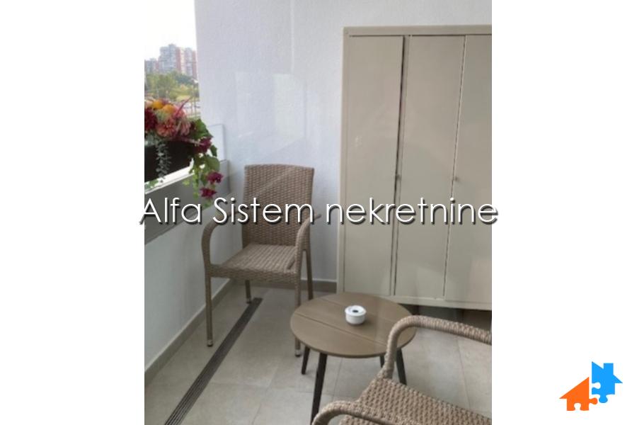 A blok, cetvrta faza, 50 m2, drugi sprat, dnevna i spavaca izlaze na terasu, namesten komplet, obezbedjenje 24 h, garaza, lux.