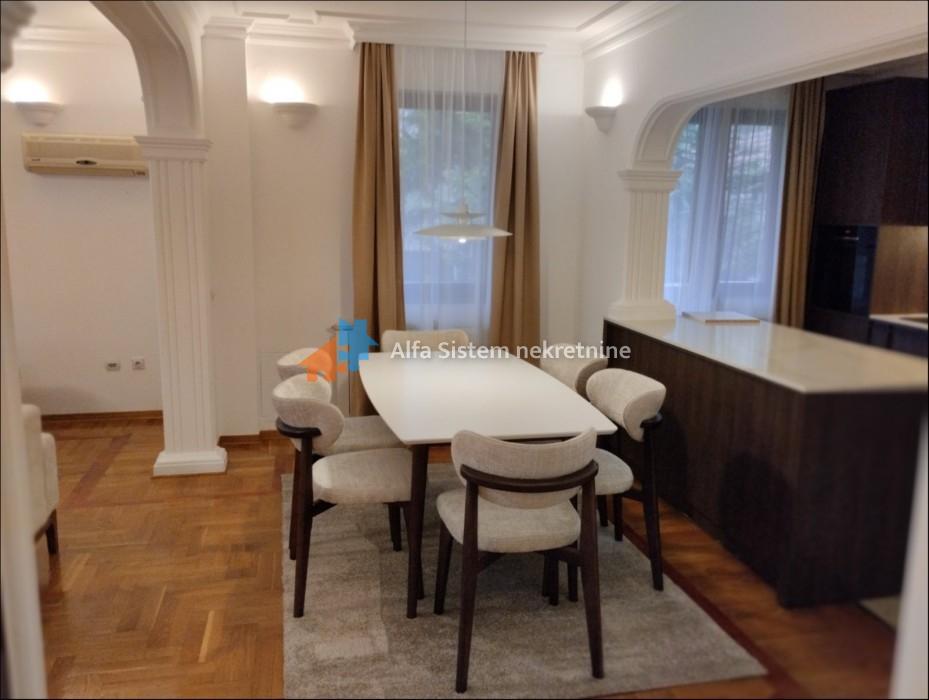 Ovaj elegantan i komforan stan, koji je nedavno u potpunosti renoviran i opremljen novim, modernim nameštajem, idealan je izbor za one koji traže luksuzan i prijatan dom u prestižnom delu grada.