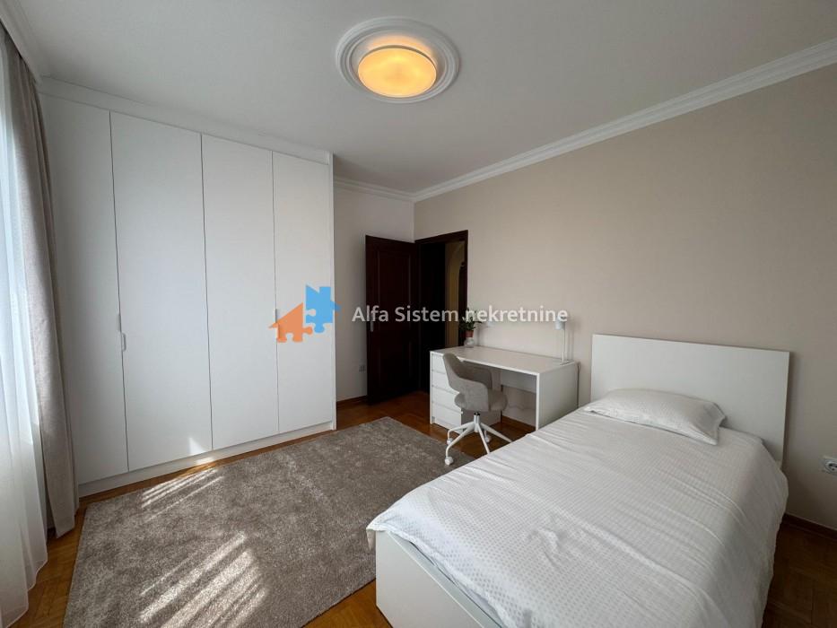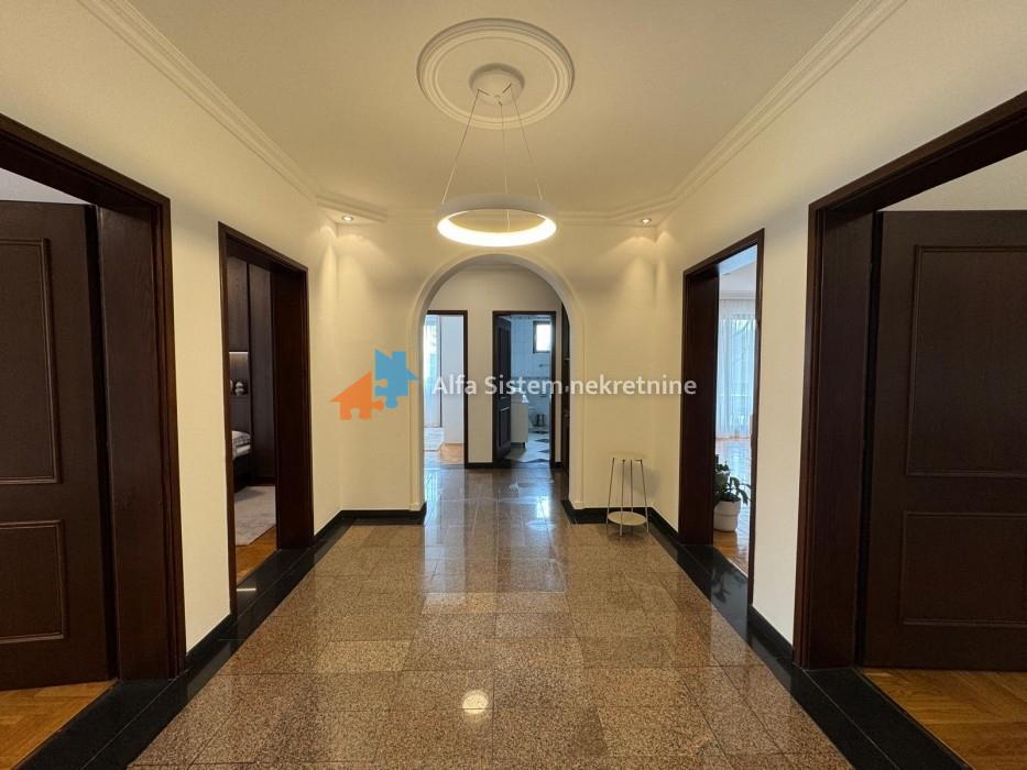Izdaje se prostran, četvorosoban, namešten komplet renoviran stan sa kaminom, smešten u kući na Dedinju, u neposrednoj blizini druge kapije Belog dvora. Stan je nedavno kompletno renoviran i opremljen potpuno novim nameštajem i uređajima. Uz stan dolaze garažno mesto sa daljinskim upravljačem i dodatno parking mesto ispred garaže, sa zasebnim ulazom sa druge strane kuće.
