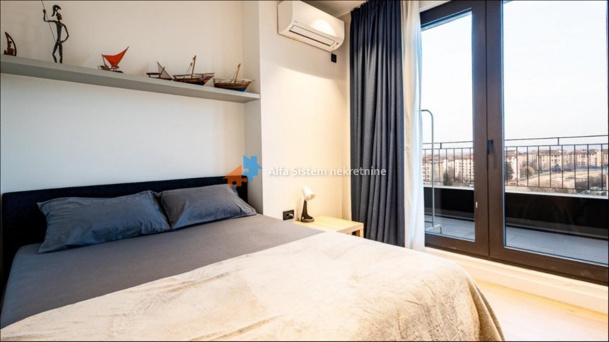 Nudimo na izdavanje vrhunski opremljen luksuzni penthaus u K-Distriktu, jednoj od najprestižnijih lokacija u Beogradu. Ovaj jedinstveni stan pruža panoramski pogled na Dunav i Zemun sa jedne strane, dok se s druge strane pruža pogled na centar grada.