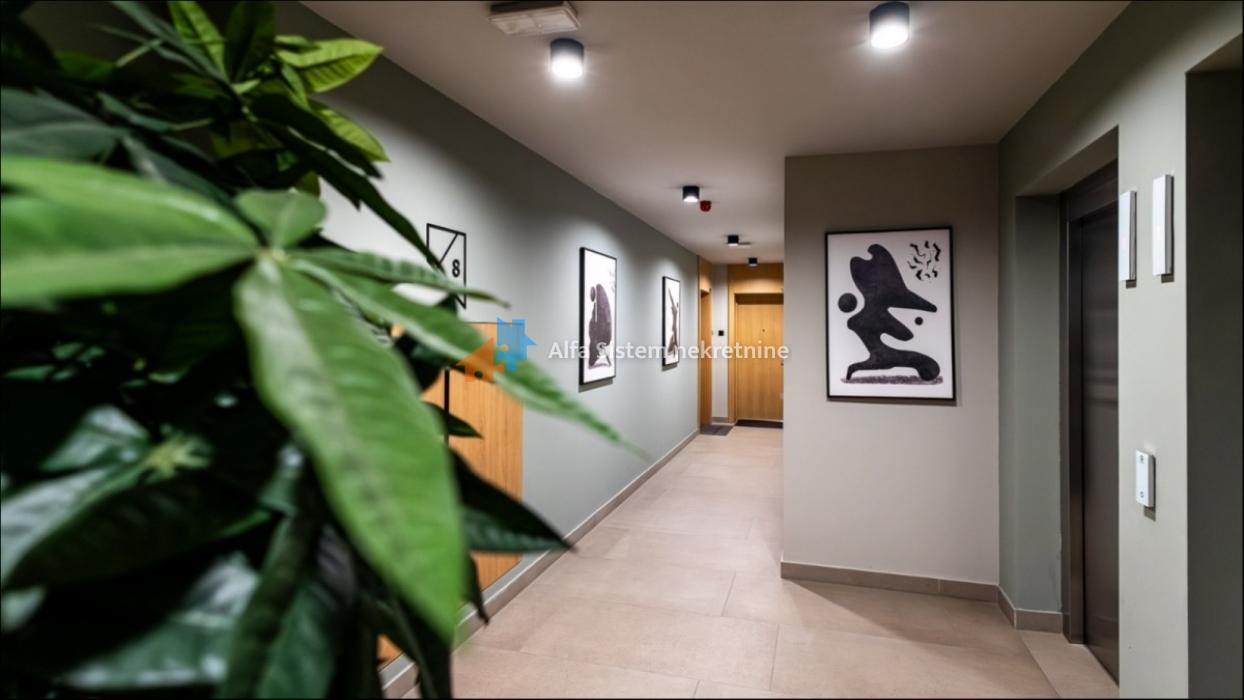 Stan je dvostrano orijentisan i ima neto unutrašnju površinu od 123 m², uz dodatnu prostranu terasu od 70 m². Sastoji se od: