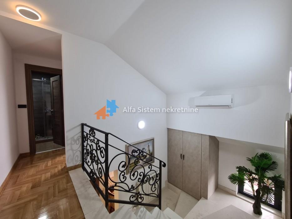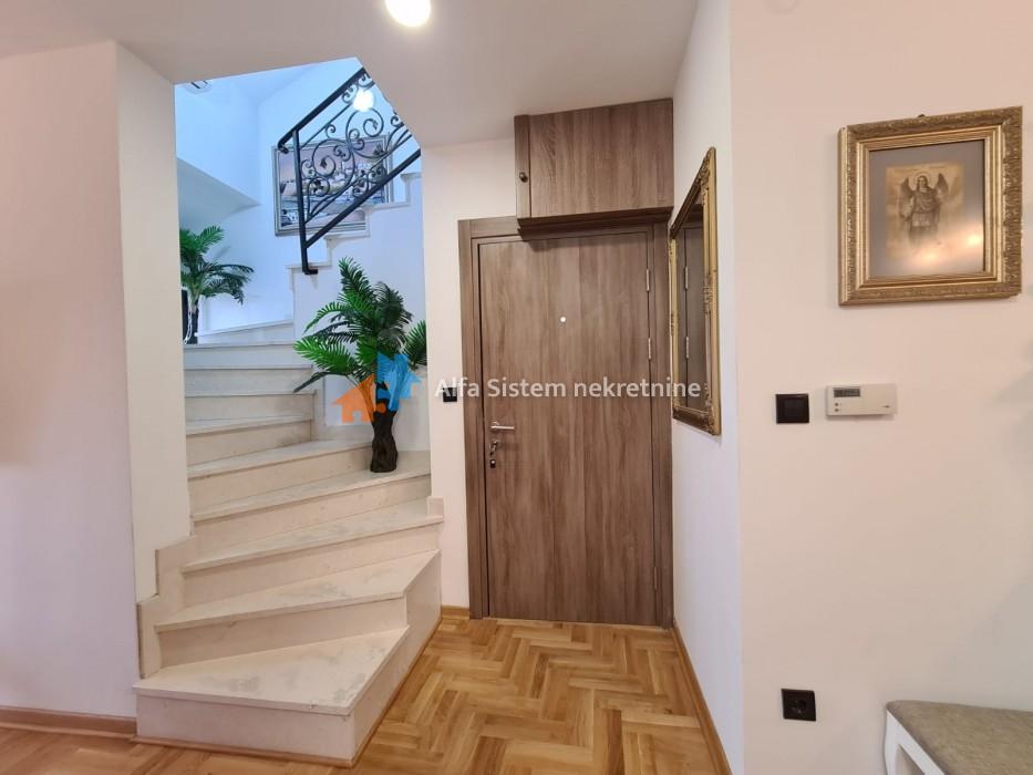Stan je luksuzan i kompletno opremljen i sastoji se od 3 spavaće sobe, sobe sa garderoberom, kuhinje, trpezarije, dnevne sobe, kupatila, toaleta, terase.