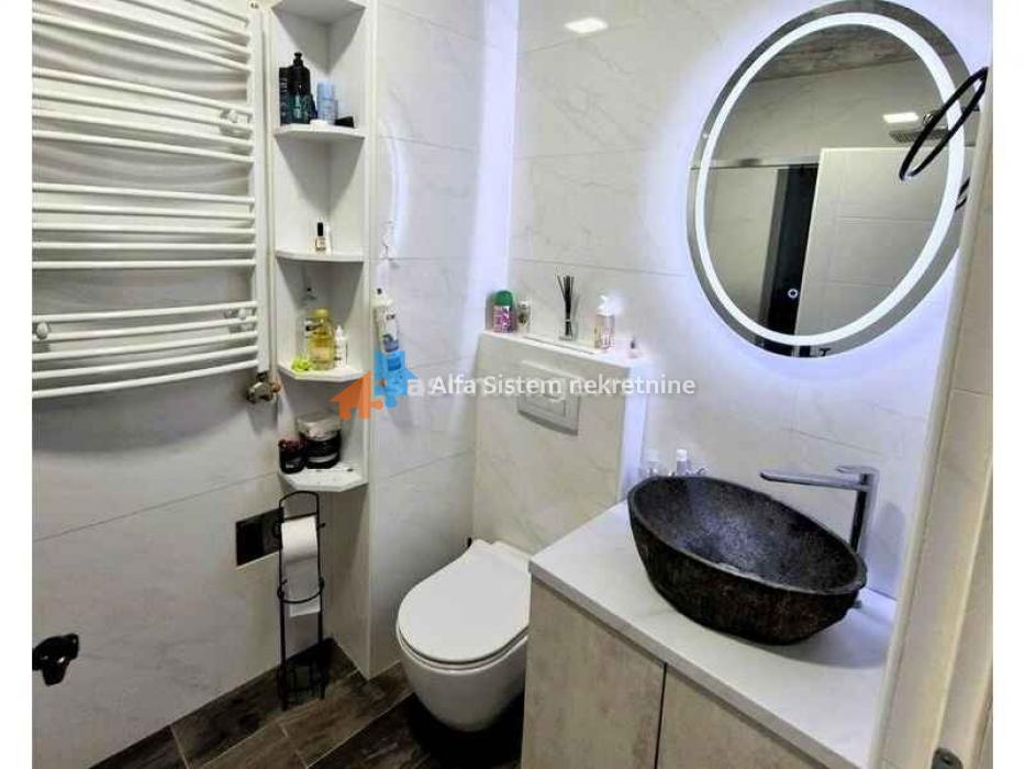 Izdaje se prostran, luksuzno opremljen četvorosoban stan u novogradnji, površine 100 m². Stan se nalazi u visokom prizemlju stambene zgrade, ali pruža osećaj samostalnog objekta, jer poseduje sopstveni ulaz, kapiju, alarmni sistem i video nadzor.