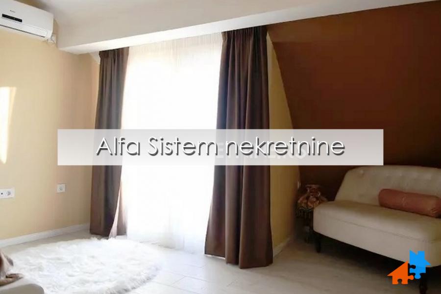 Stan se sastoji iz dva nivoa i ukupne površine je 140m2 + 2 garažna mesta i ostava ukupne površine 45 m2.