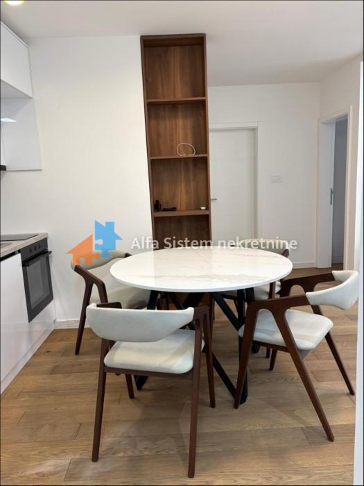 Izdaje se luksuzno opremljen, neuseljavan dvosoban stan površine 54 m² u novogradnji iz 2025. godine, na Lekinom brdu. Stan se nalazi na 1. spratu zgrade sa ukupno 5 spratova i namešten je kvalitetnim i luksuznim nameštajem. Sastoji se od hodnika, kuhinje, dnevnog boravka, spavaće sobe, kupatila i terase. Opremljen je podnim grejanjem po potrošnji na struju, klimom i bojlerom sa wifi upravljanjem.