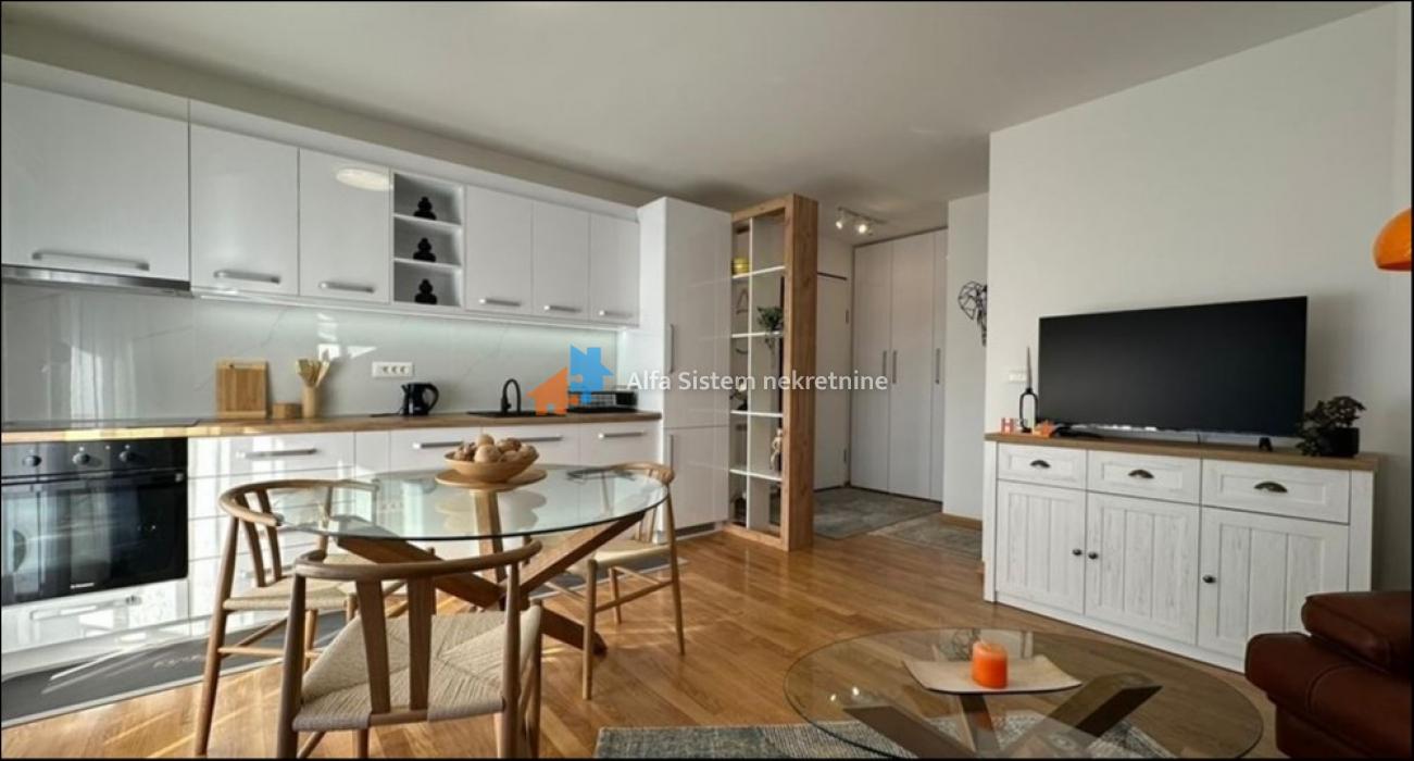Stan se sastoji od ulaznog hodnika, dnevnog boravka sa kuhinjom i trpezarijom, komforne spavaće sobe, moderno opremljenog kupatila i terase. Kompletno je namešten savremenim nameštajem i opremljen kvalitetnim uređajima, sa posebnim akcentom na funkcionalnost i estetiku.