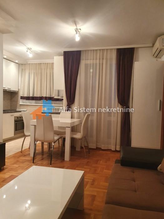 Stan se sastoji od dnevnog boravka sa trpezarijom i kuhinjom, odvojene spavaće sobe, moderno opremljenog kupatila i terase. Prostor je izuzetno funkcionalan i prijatan za boravak, opremljen kvalitetnim nameštajem i savremenim uređajima.