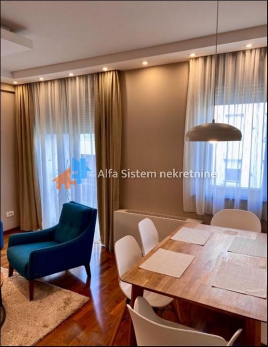 Po strukturi je dvoiposoban i sastoji se od prostranog dnevnog boravka sa trpezarijom, kuhinje, spavaće sobe, dečije sobe, kupatila, toaleta i hodnika. Stan je veoma svetao, potpuno namešten i opremljen svim neophodnim uređajima za udoban život. Grejanje je podno, a zgrada poseduje interfon i video nadzor.