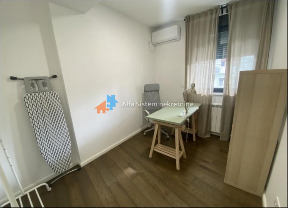 Izdaje se kompletno namešten dvoiposoban stan površine 77 m², smešten na prvom spratu novije zgrade na Vračaru.