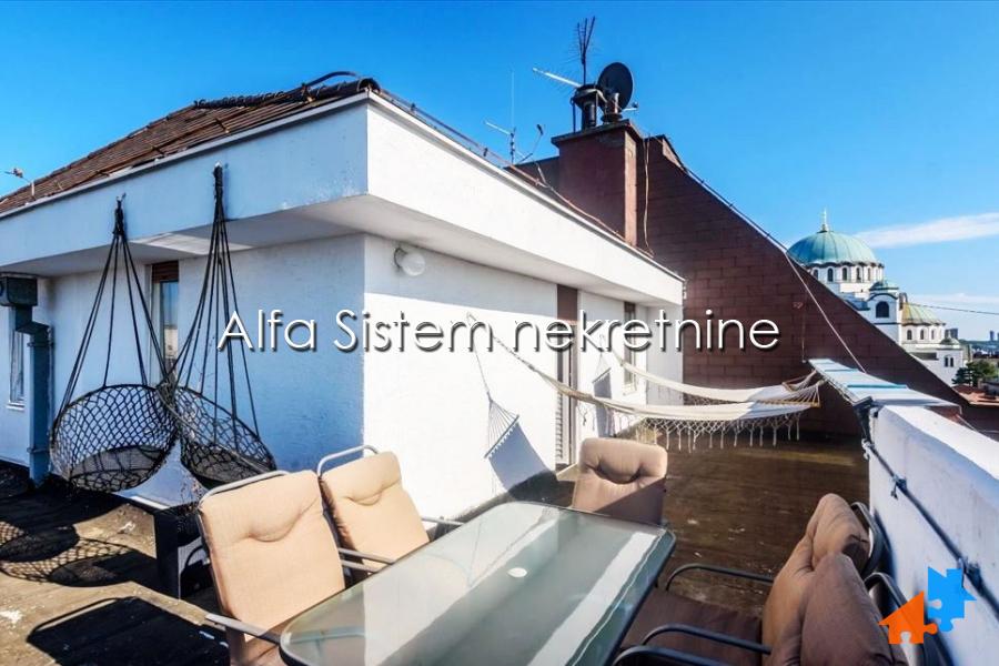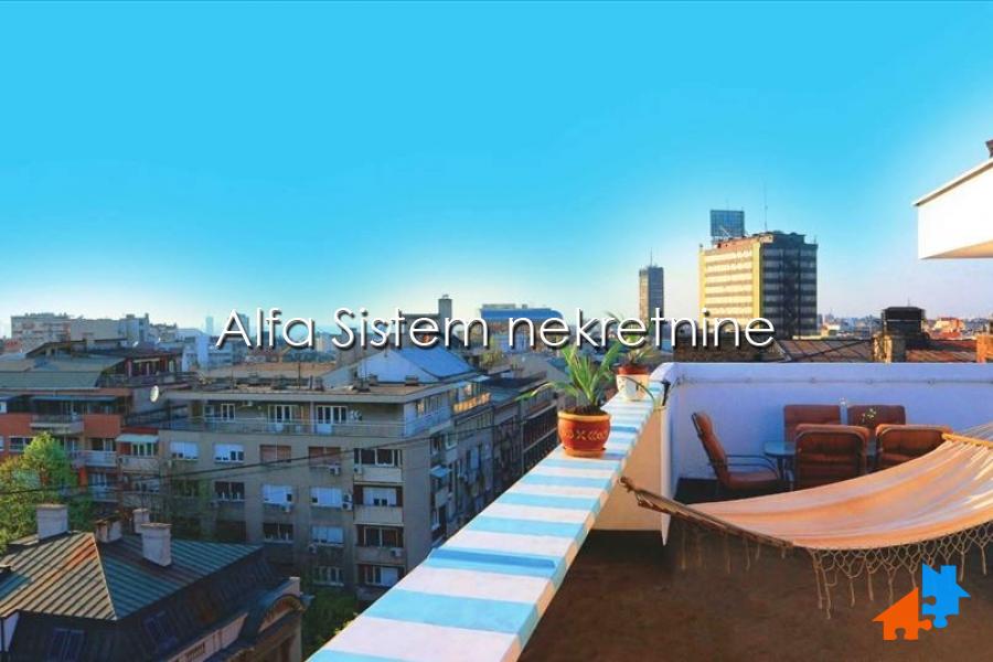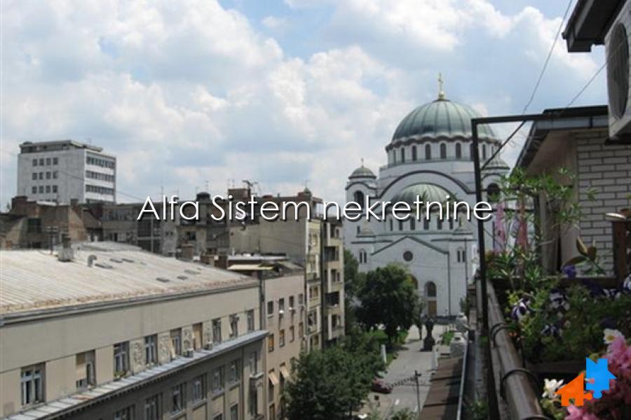 Fantastičan Penthaus apartman sa dve spavaće sobe na vrhu zgrade dobro očuvanog objekta sa 24-satnim video nadzorom i fenomenalnim pogledom sa privatne ogromne terase orijentisana na sve strane neba počevši od Hrama Svetog Save iz blizine, Beograd i širu okolinu.