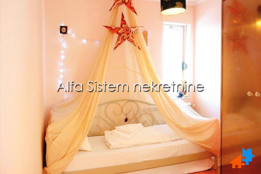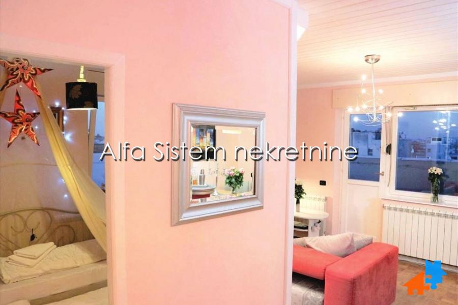Ovaj Penthaus je sinonim mira i privatnosti u centru grada i svih bitnih saobraćajnica, škola, fakulteta, Kalenić pijace. Stan poseduje jednu bračnu spavaću sobu, drugu dečiju spavaćju sobu sa singl ležajem i odlično uređen dnevni boravak. Kuhinja je potpuno opremljena, odvojena šankom od trpezarije.