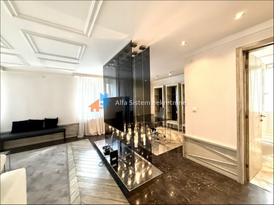 Stan je izuzetno moderan, luksuzno opremljen i funkcionalan, idealan za porodice ili profesionalce koji žele komforan život u centru grada.