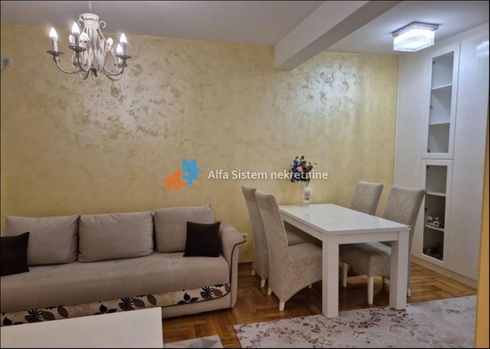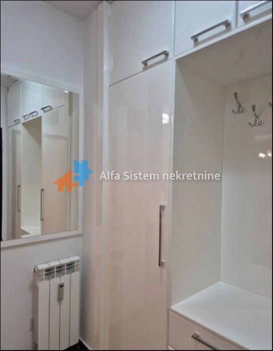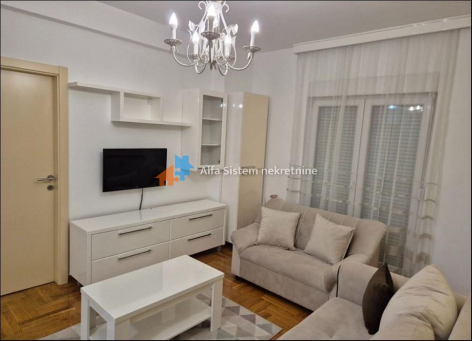 Izdaje se nov, luksuzno uređen dvosoban stan površine 47 m² u mirnoj ulici u blizini Đerma. Stan se nalazi na visokom prizemlju novije zgrade i prvi put se izdaje.