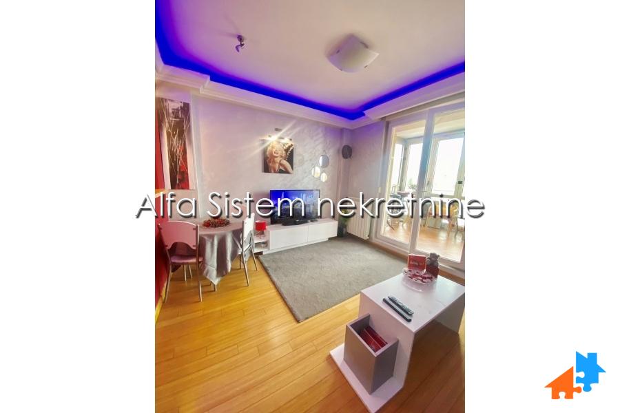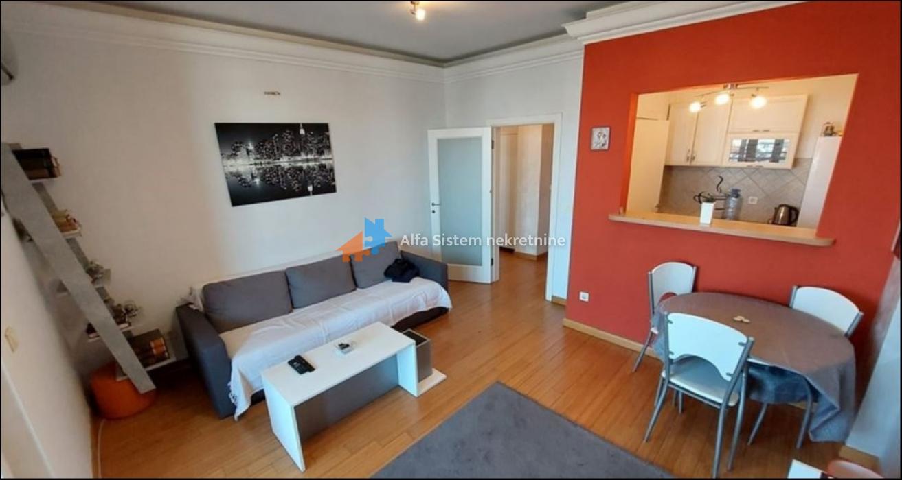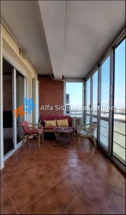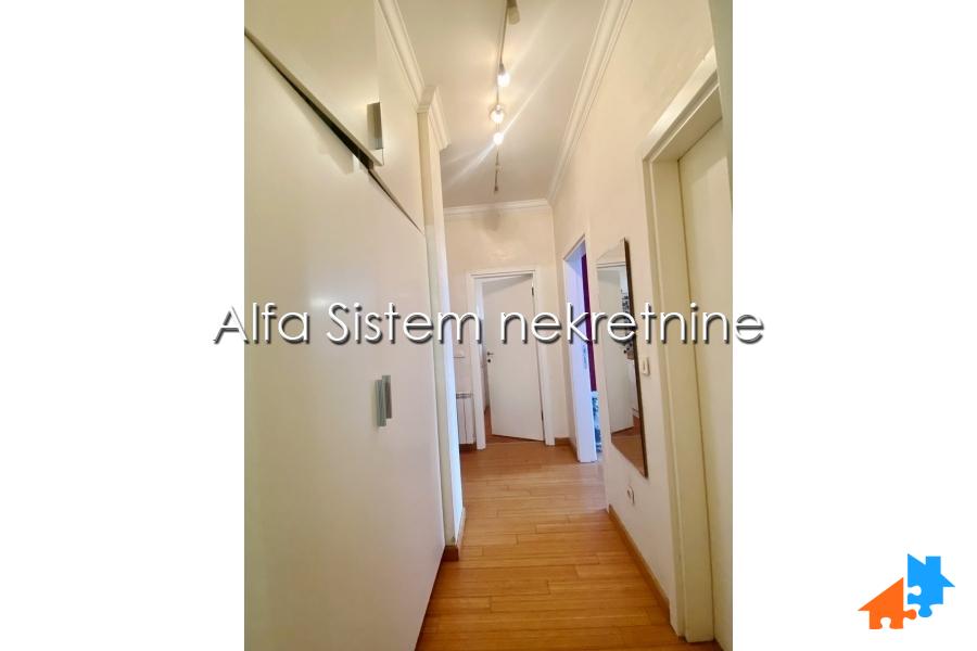 Ulaz poseduje dva lifta, obican i teretni. Stan je velicine 60m2, sa dnevnom sobom, kuhinjom, kupatilom, spavacom sobom i dve velike terase.