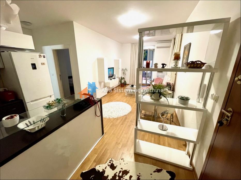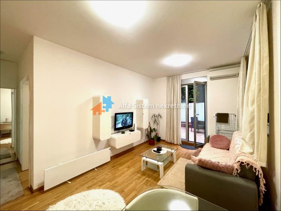 Izdaje se namešten stan na 1. spratu nove zgrade, površine 42m². Stan ima prelepu terasu od 46m², savršen za uživanje na otvorenom.