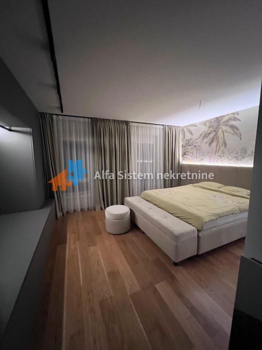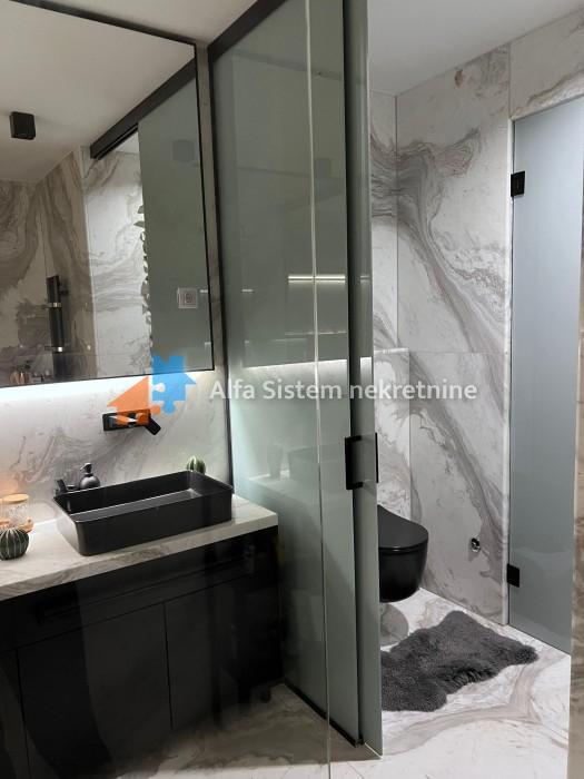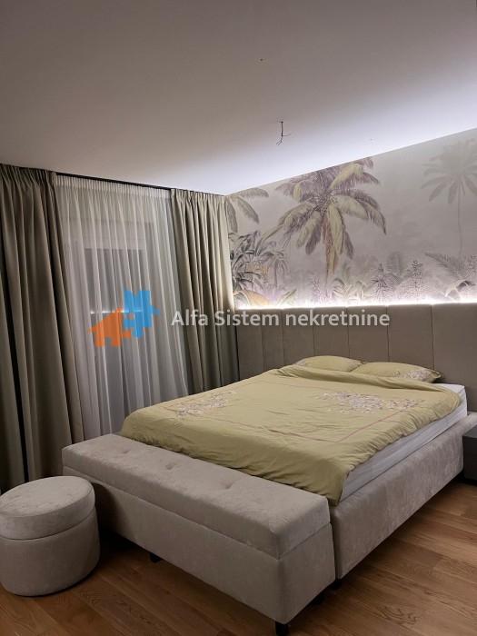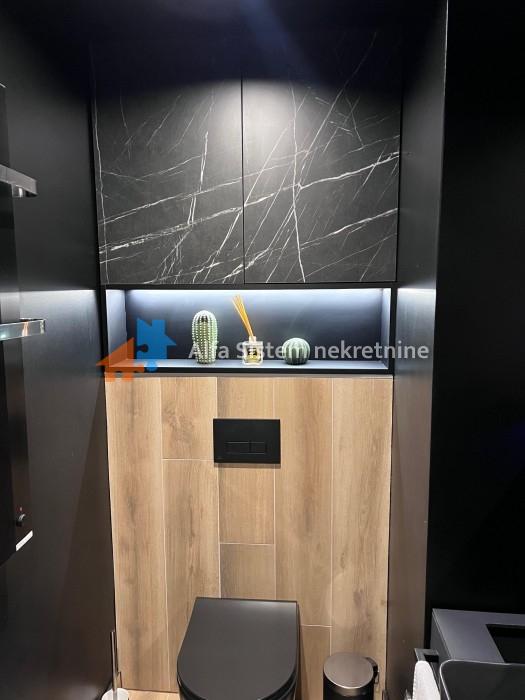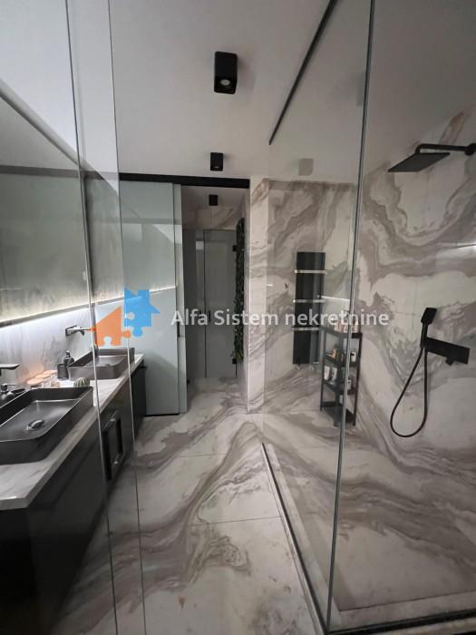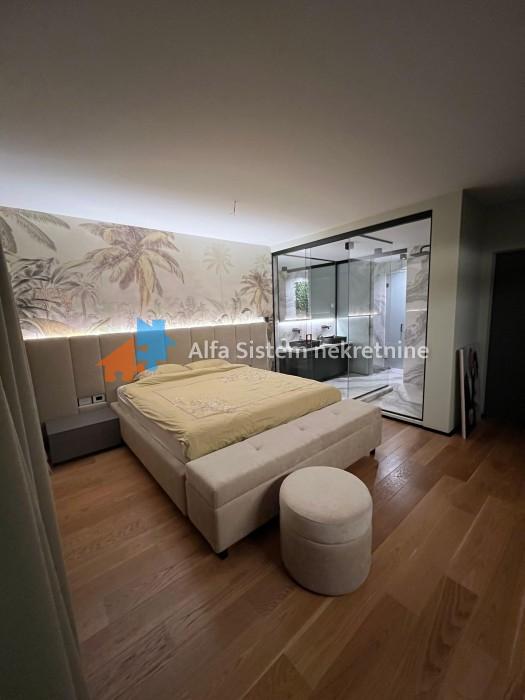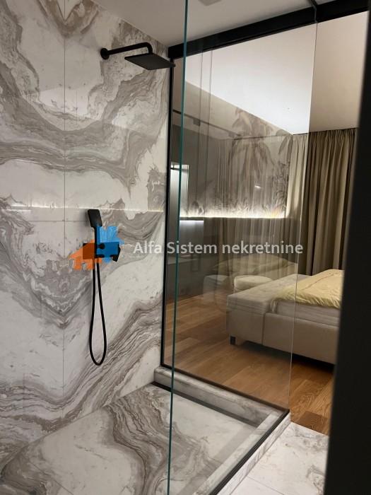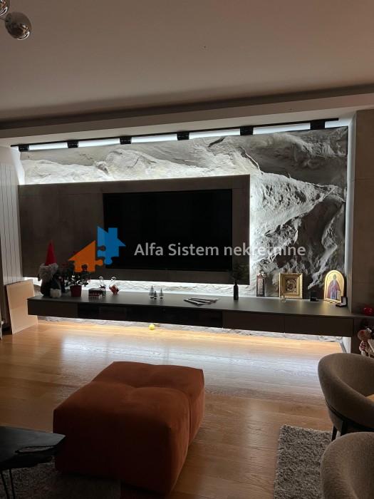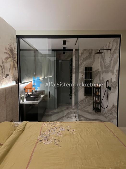 Enterijer i oprema: Stan je osmišljen i opremljen s posebnom pažnjom na detalje, korišćeni su najkvalitetniji materijali – mermer, granit, medijapan, kao i ručno rađene zidne tehnike.