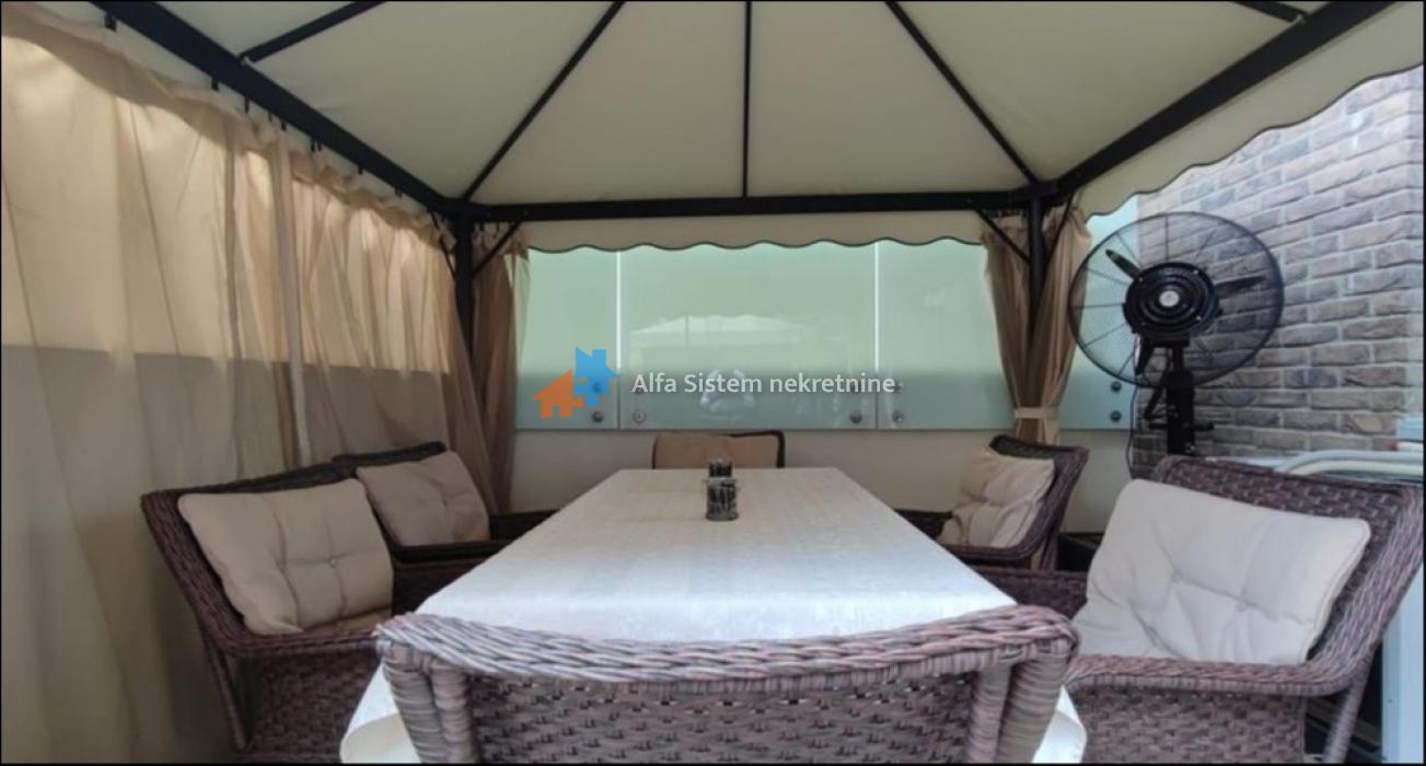 Prodaje se kompletno opremljen savremenim, pažljivo biranim nameštajem i tehnikom, što dodatno olakšava useljenje i smanjuje dodatna ulaganja. Privatna bašta, sa dva natkrivena kutka za odmor, pruža neprocenjivu dodatnu vrednost, idealna je za opuštanje ili boravak sa porodicom i prijateljima. Orijentacija ka unutrašnjem dvorištu garantuje mir i tišinu.