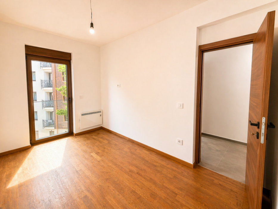 Stan ima 47 m² i odlikuje ga vrhunska gradnja i završna obrada – alu-drvo stolarija, hrastov parket i pažljivo birani materijali. Funkcionalnog je rasporeda i sastoji se od dnevnog boravka sa kuhinjom, dve odvojene spavaće sobe i kupatila i terase.