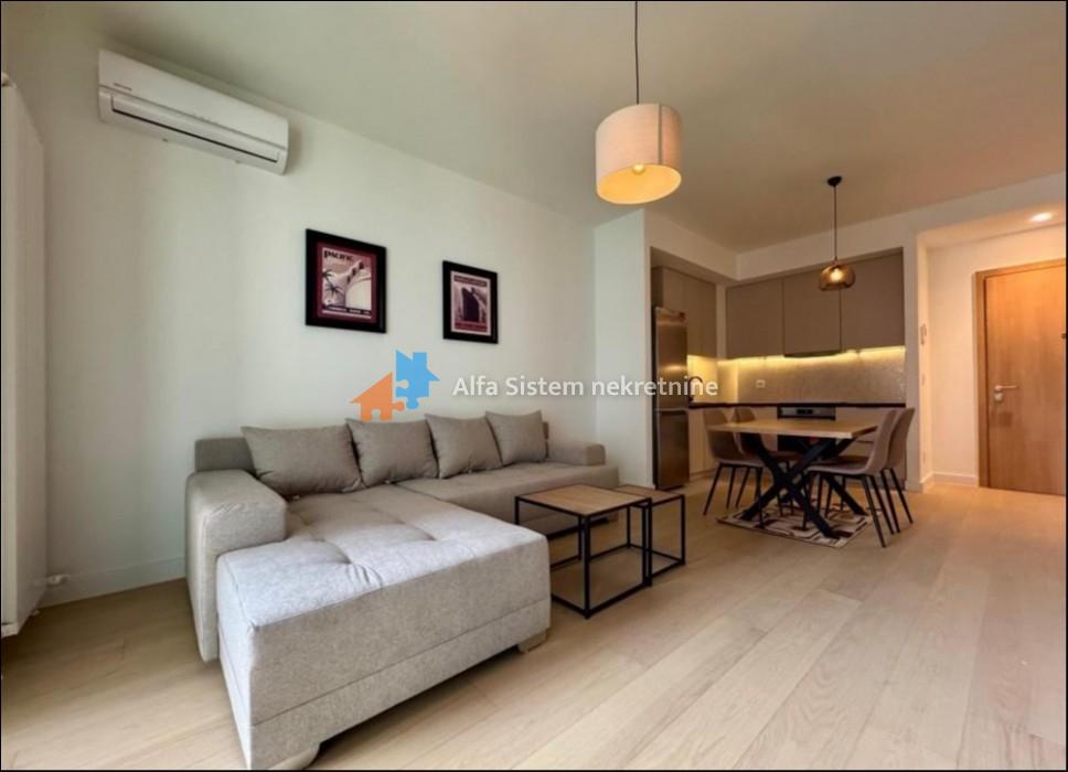 Opis stana: Stan se sastoji od ulaznog hodnika, prostrane dnevne sobe sa izlazom na terasu koja pruža pogled na reku Savu, kuhinje sa trpezarijom, spavaće sobe, kupatila i vešernice. Stan je neuseljavan i kompletno opremljen luksuznim nameštajem.